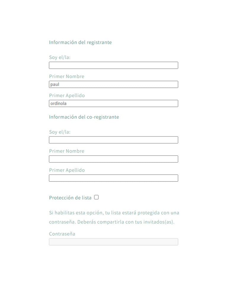 - Título de la lista (Ejemplo: Baby Shower de Miranda / Cumpleaños de Thiago)
