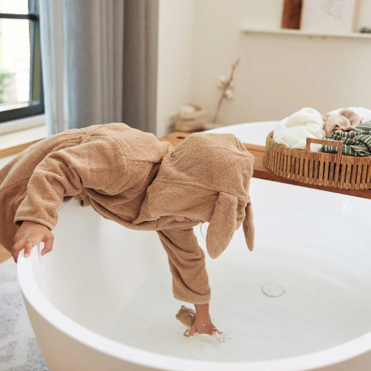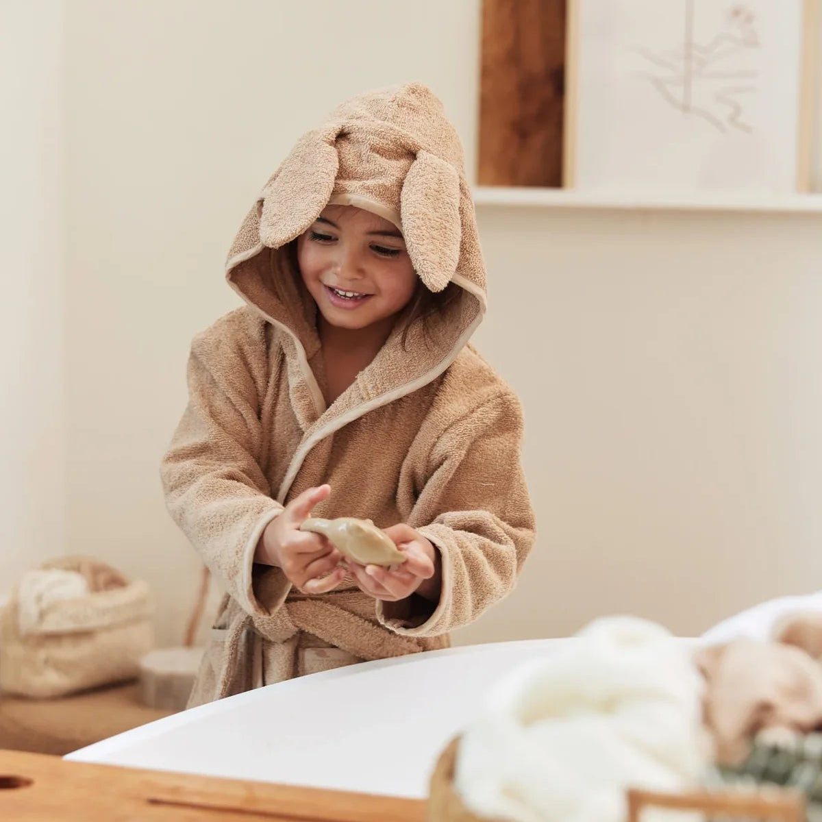 Esta bata de baño infantil de algodón rizo con orejitas es la prenda perfecta para envolver a tu peque con suavidad después del baño, la ducha o un chapuzón en la piscina.