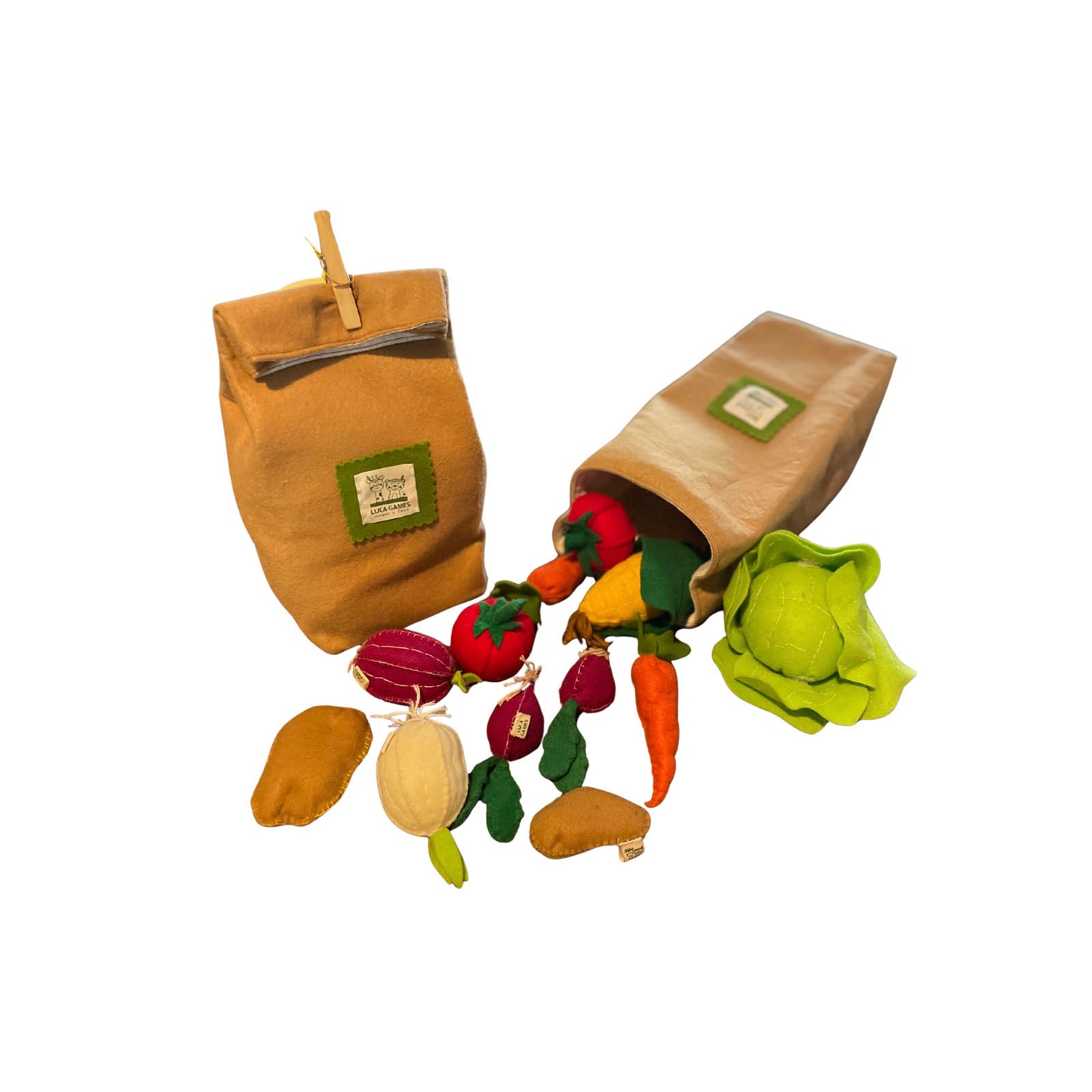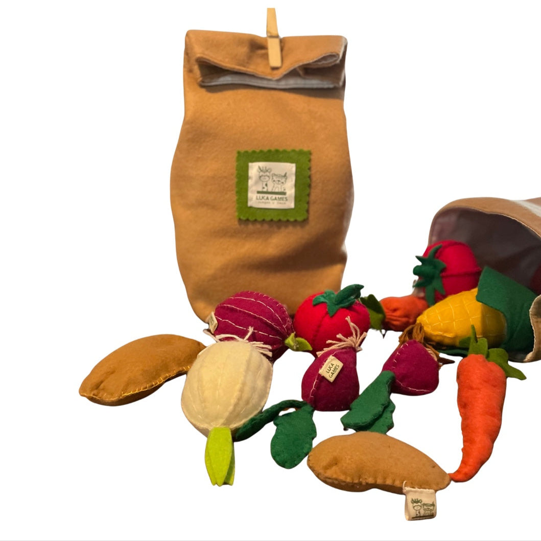 - Incluye: una bolsa de fieltro tipo kraft con variedad de verduras.
