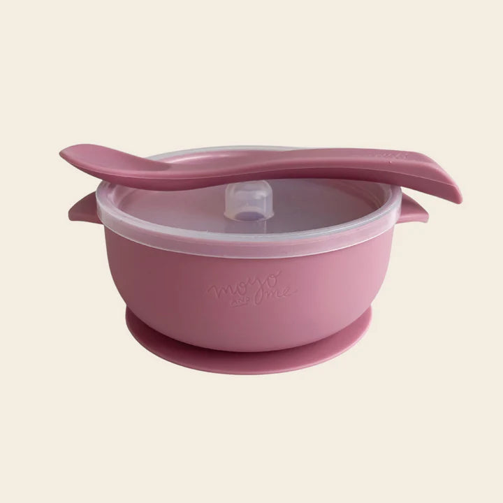 Bowl de silicona con asas, tapa transparente y cuchara curvy.