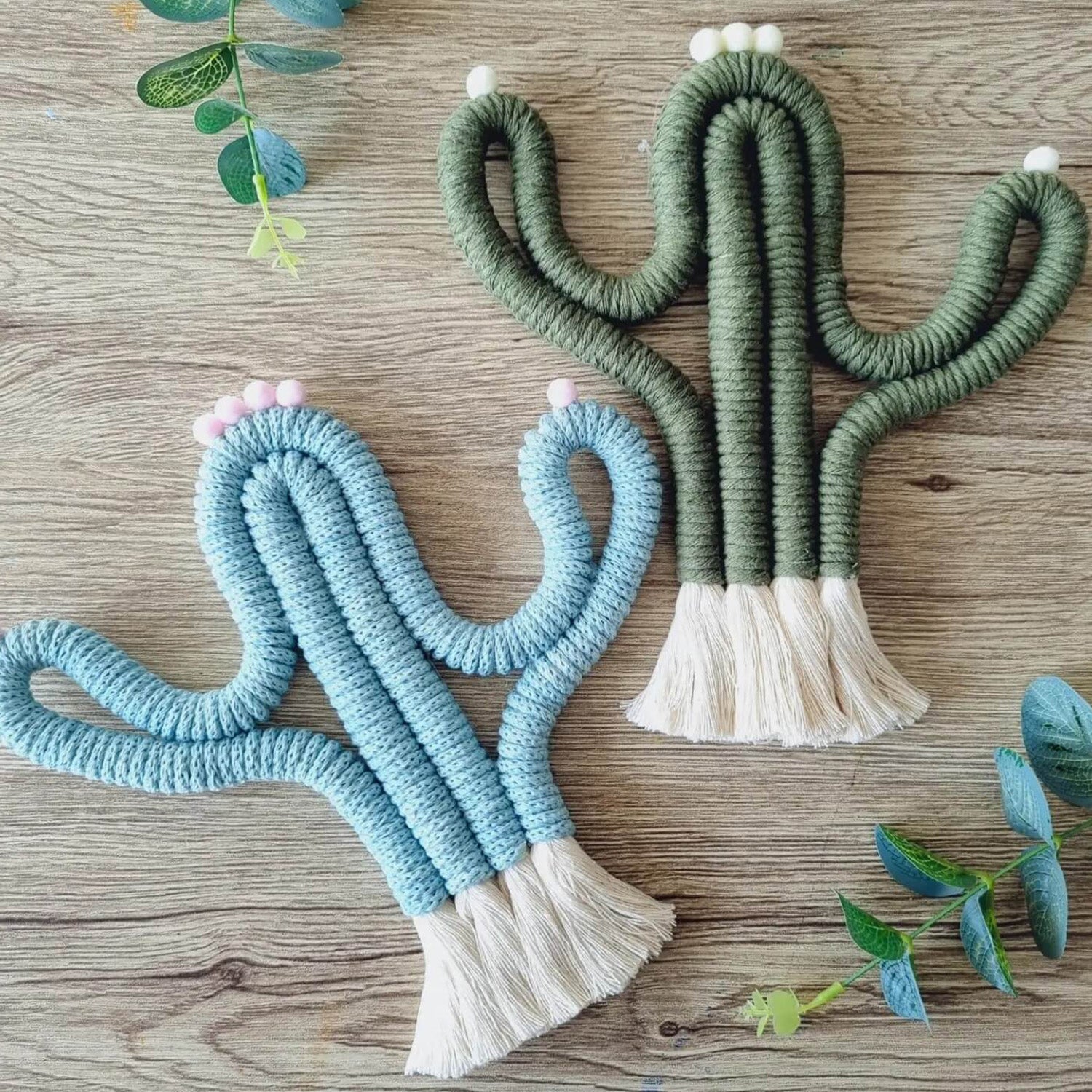 Pieza colgante de pared con pompones pequeños, hecho a mano con hilos y fibra de algodón.