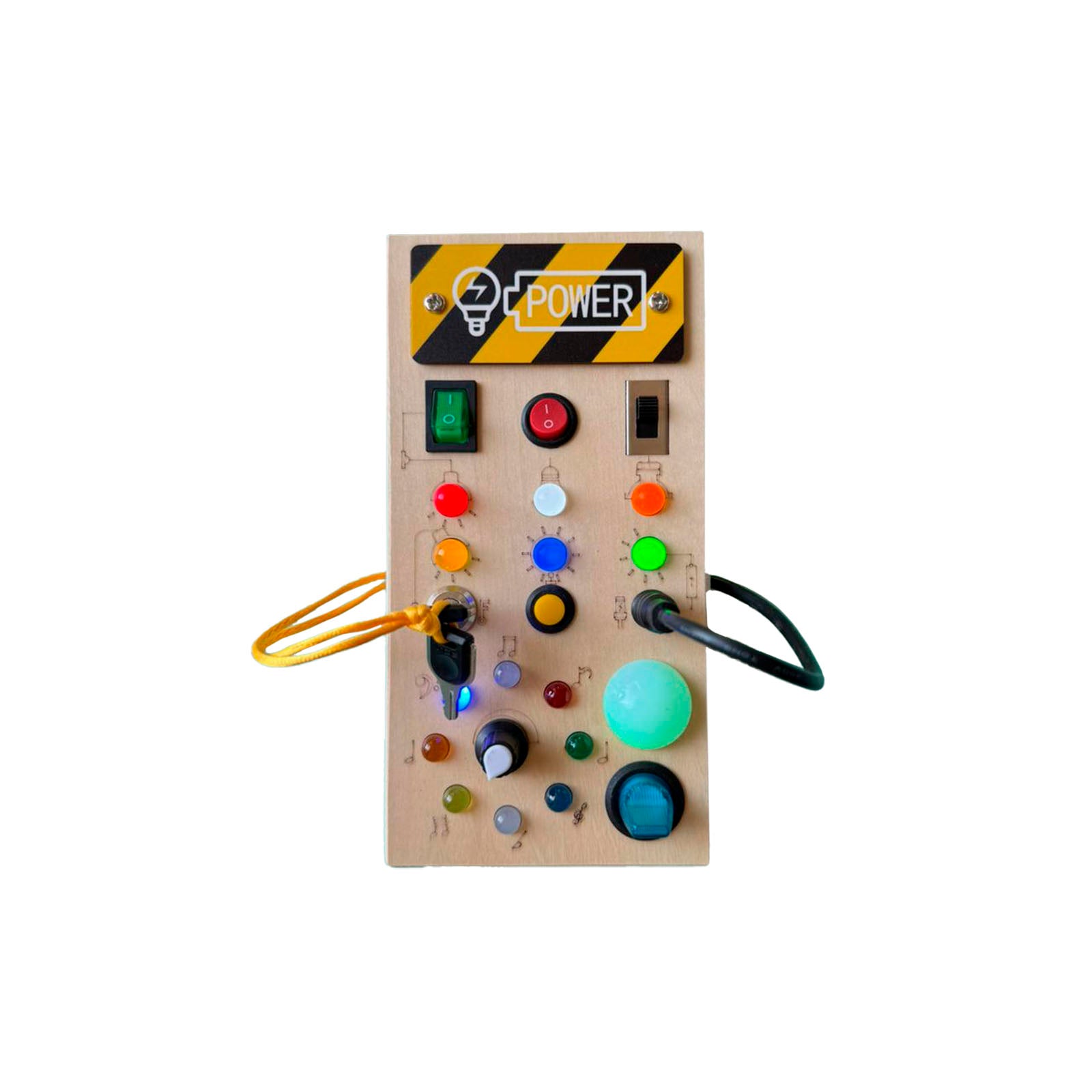 Cuenta con botones de colores vibrantes que, al presionarlos, activan una luz LED que cambia y capta la atención del niño.