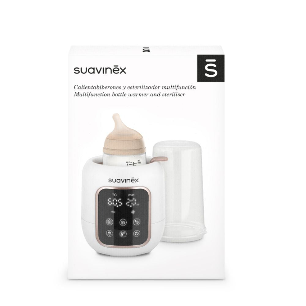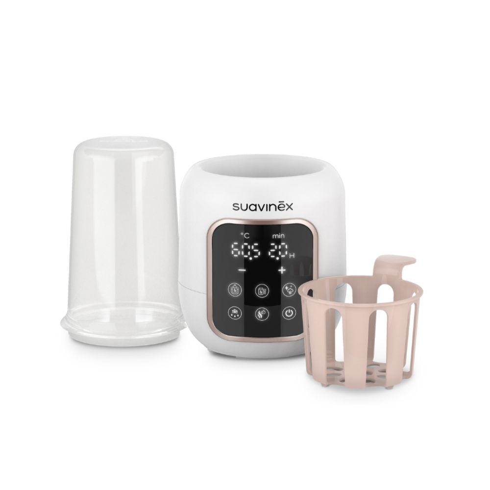 - Calentador de biberones y esterilizador premium con pantalla táctil digital y acabado en lámina caliente.