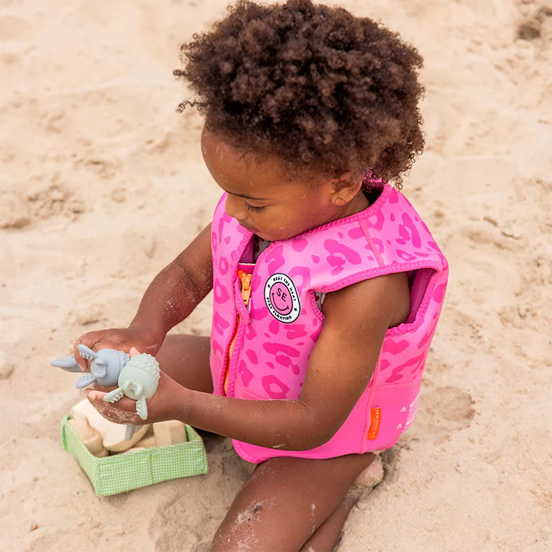 El chaleco de natación Swim Essentials Pink Leopard es adecuado para niñas de 4 a 6 años y soportan una carga máxima de 30 kg.