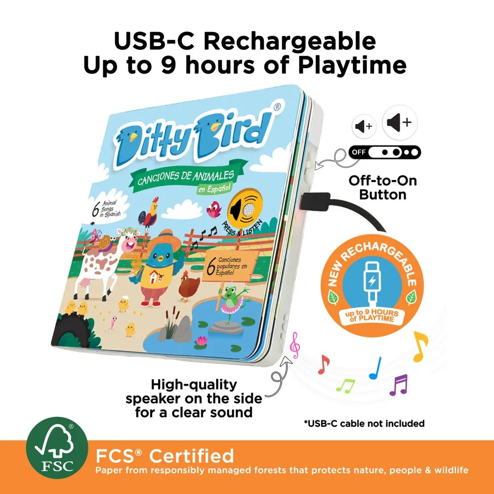 Los libros Ditty Bird brindan aprendizaje a través de canciones y sonidos. Dirigidos a niños desde 6 meses hasta 3 años.
