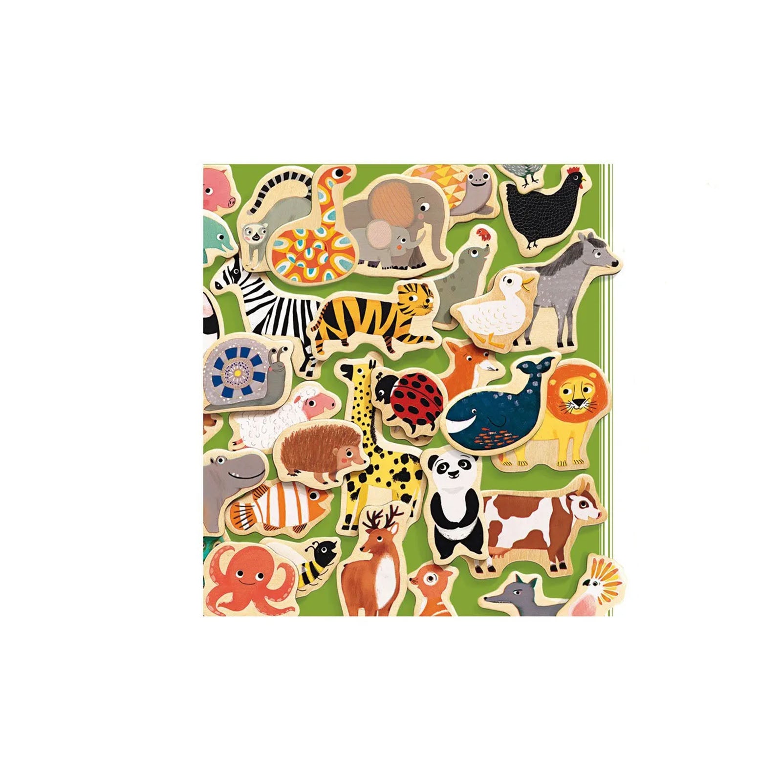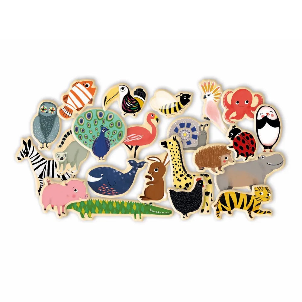 Su hijo viajará con este set en caja de 36 animales magnéticos de madera.