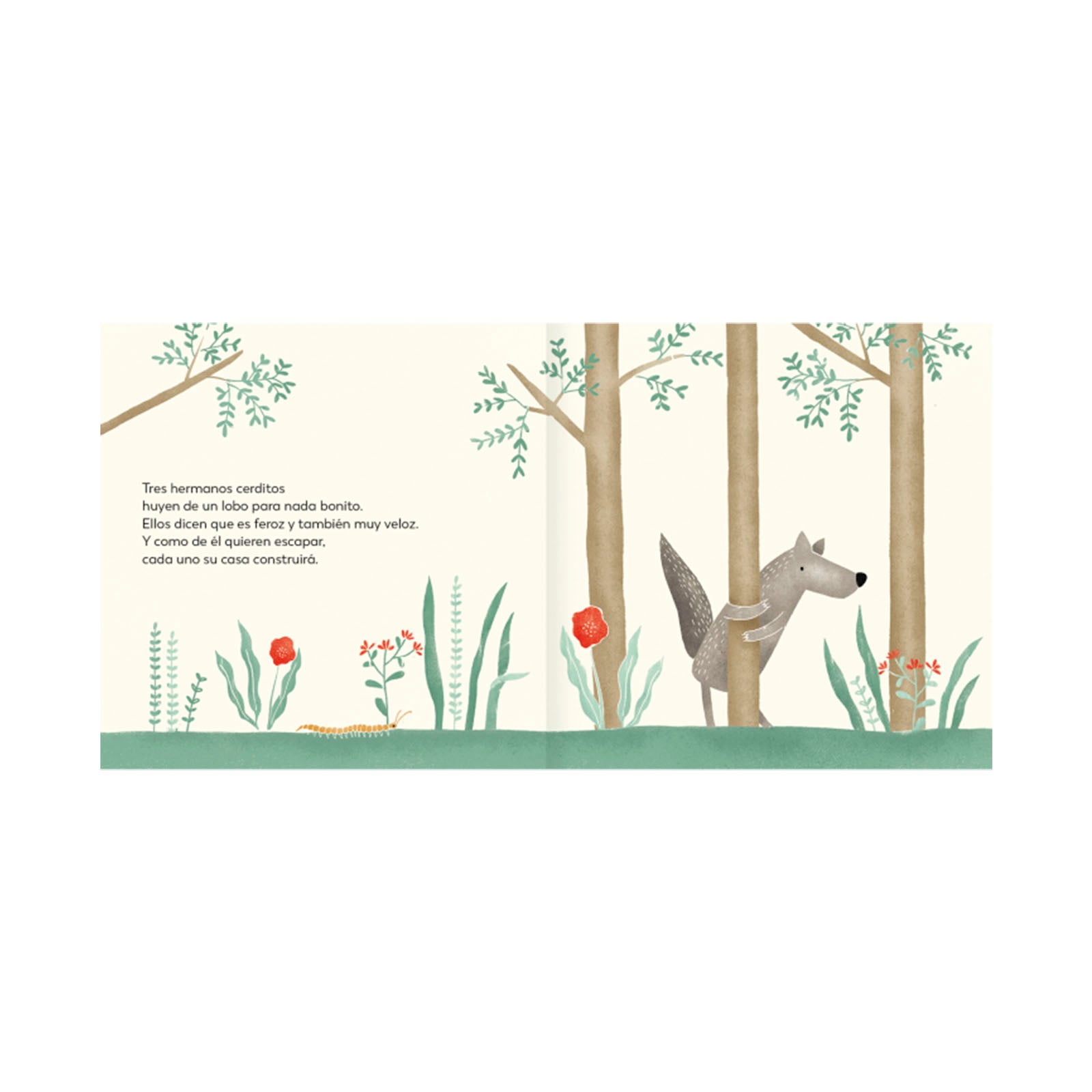 Los tres cerditos es una fábula de origen popular del siglo XIX de la que se desconoce su autor. Cuenta la historia de tres hermanos que, perseguidos por el lobo feroz, aprenden la importancia del esfuerzo y el trabajo para obtener una recompensa. Si bien hay registros de la publicación de la obra a mediados del 1800, es importante destacar que se trata de una narración tan popular que pudo ser transmitida oralmente con mucha facilidad.