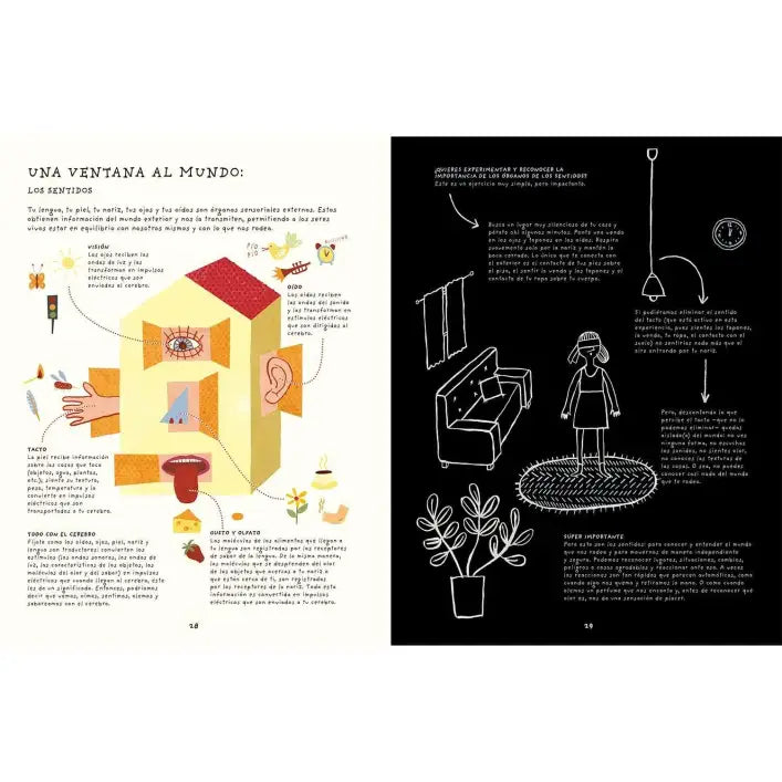 Las ilustraciones de Sole Sebastián hacen que aprender de este libro informativo sea entretenido, con experimentos y actividades que mantendrán tu cerebro sano y entrenado.