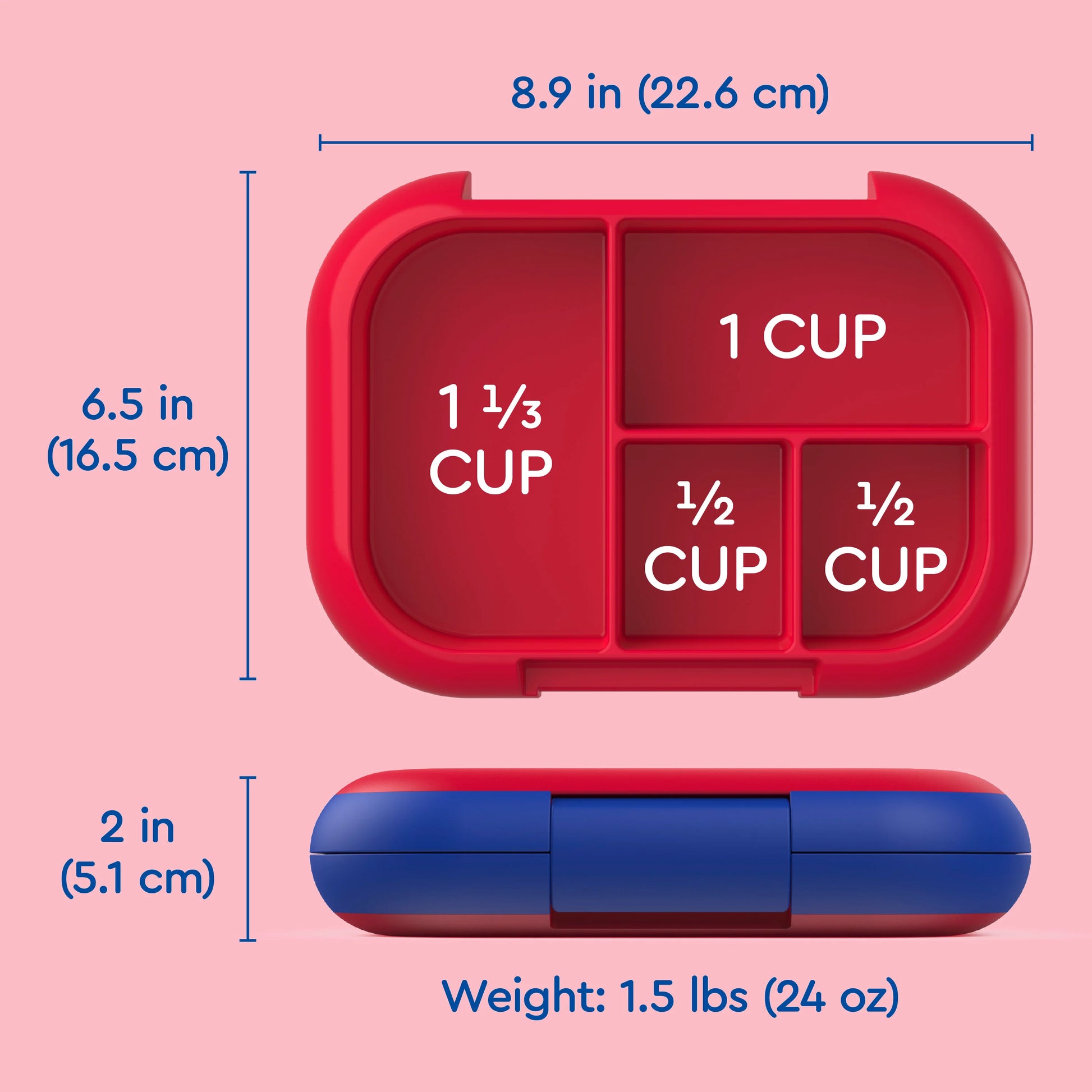 Diseñada con una bandeja de 4 compartimentos con porciones perfectas para el apetito del niño, esta lonchera bento ayuda a los padres a empacar una variedad de refrigerios y comidas como frutas, verduras, yogur, salsas y más. La bandeja se coloca encima de la bolsa de hielo aislante opcional, que se congela durante la noche y se ajusta de forma segura en su lugar para mantener el almuerzo fresco hasta la hora de comer.
