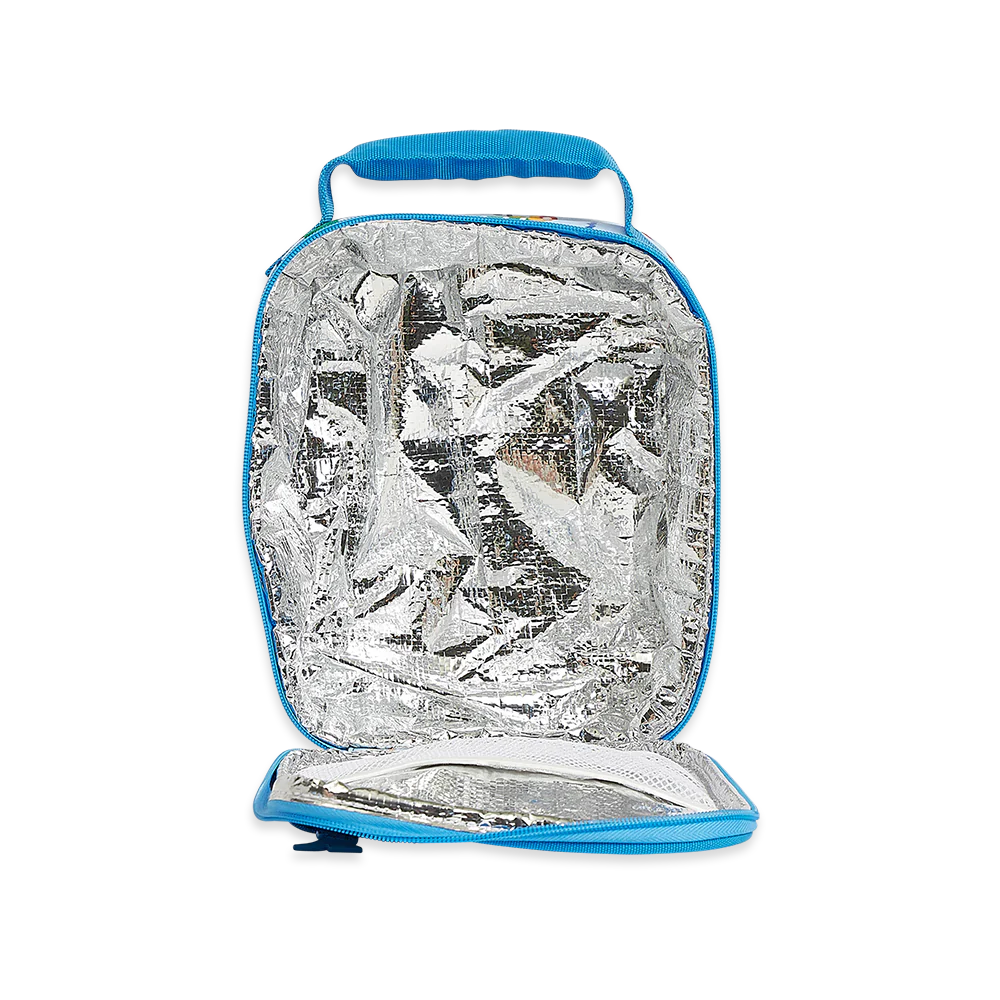 Nuestra lonchera térmica grande está completamente forrada con lámina térmica para mantener la comida a la temperatura ideal. Cuenta con un bolsillo interior elástico y un bolsillo exterior con cremallera para guardar refrigerios o nuestras compresas frías.