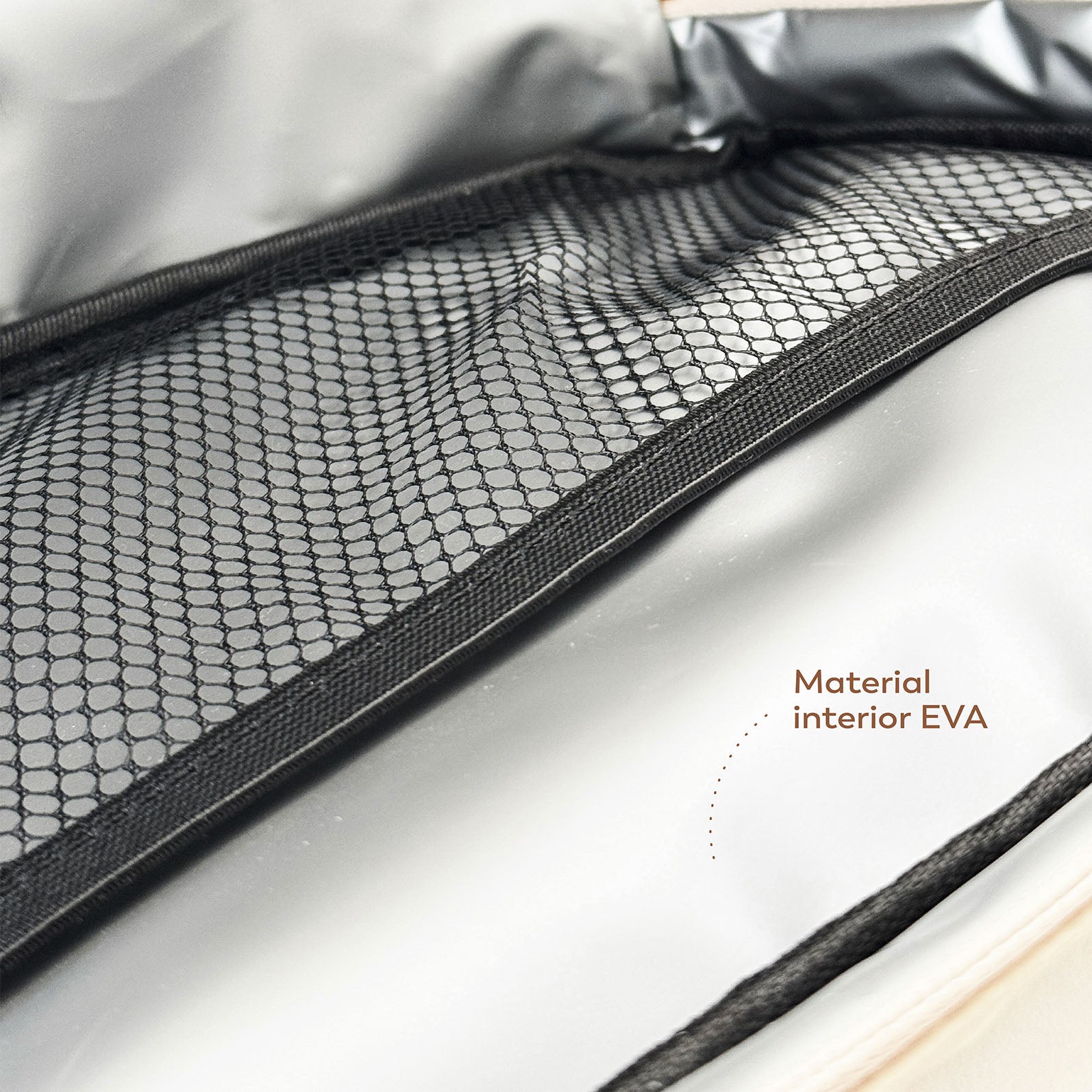 En la parte interna, está cubierta de material EVA, es impermeable y resistente a altas temperaturas manteniendo la calidad de los alimentos.