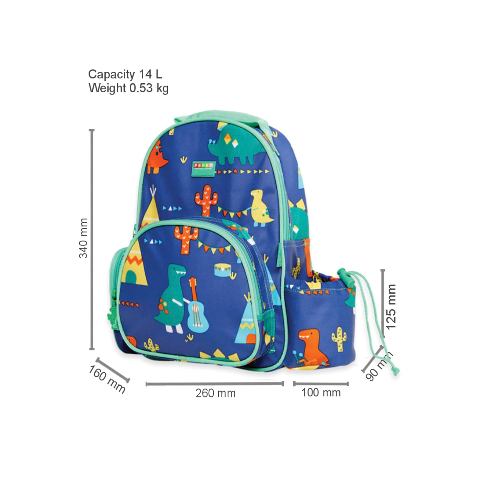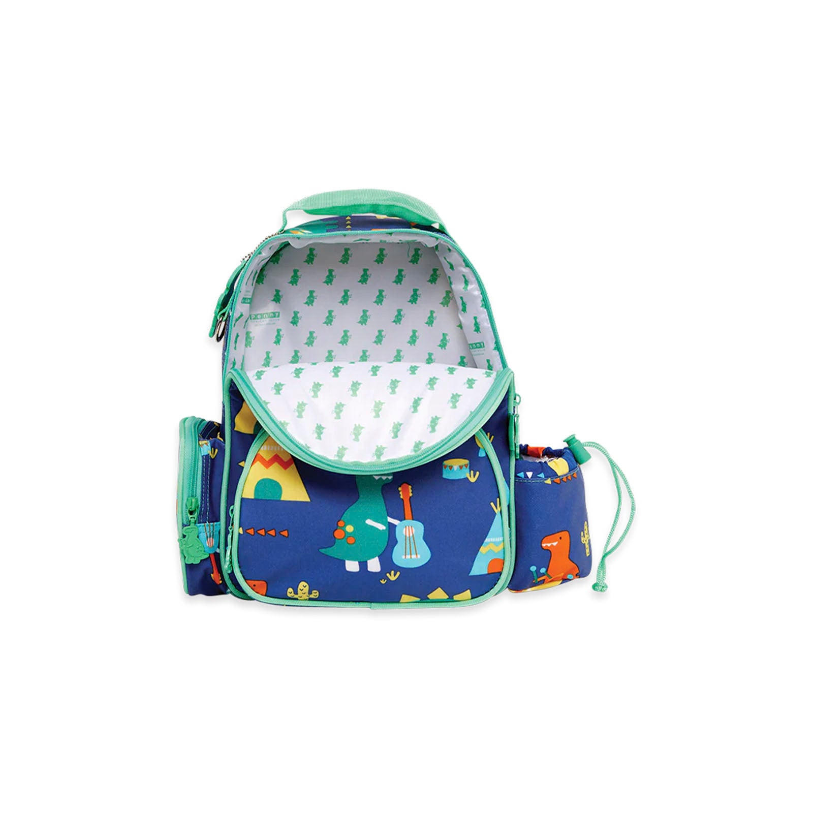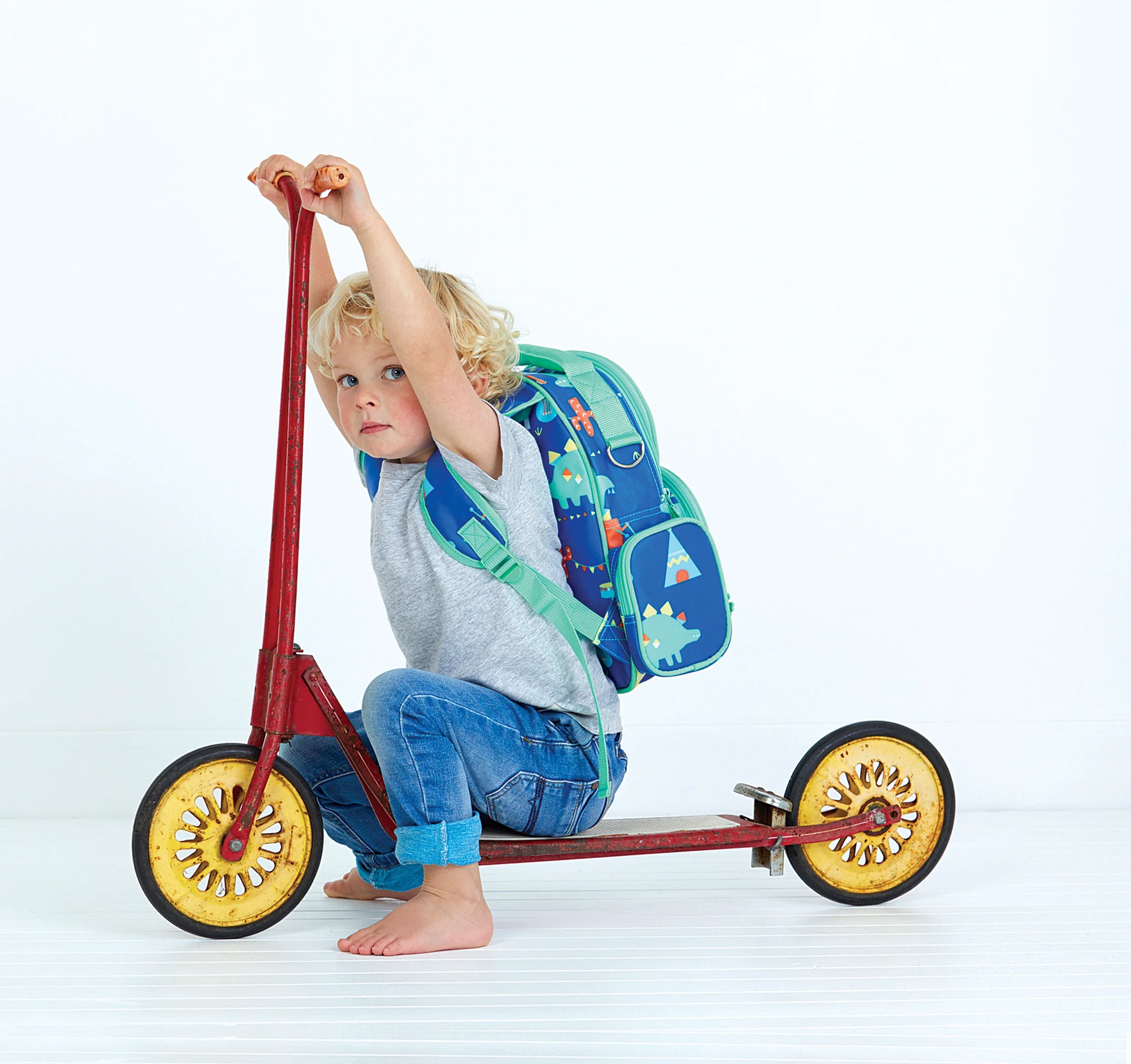 La mochila, que se puede usar con correas de hombro ajustables o llevarla con un asa acolchada, tiene múltiples bolsillos para una botella de bebida, con grandes y divertidos tiradores de cremallera especialmente diseñados para los deditos de los peques.