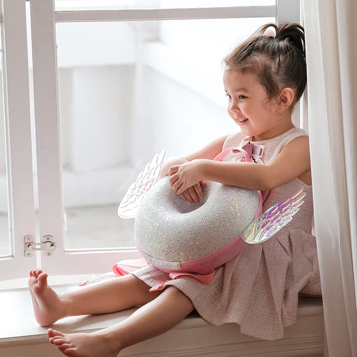 Esta linda mochila Shiny Angel de la serie Donut de Zoyzoii tiene unas hermosas alas de ángel y un brillo especial, está hecha con materiales de la más alta calidad, impermeables y seguras para los niños.