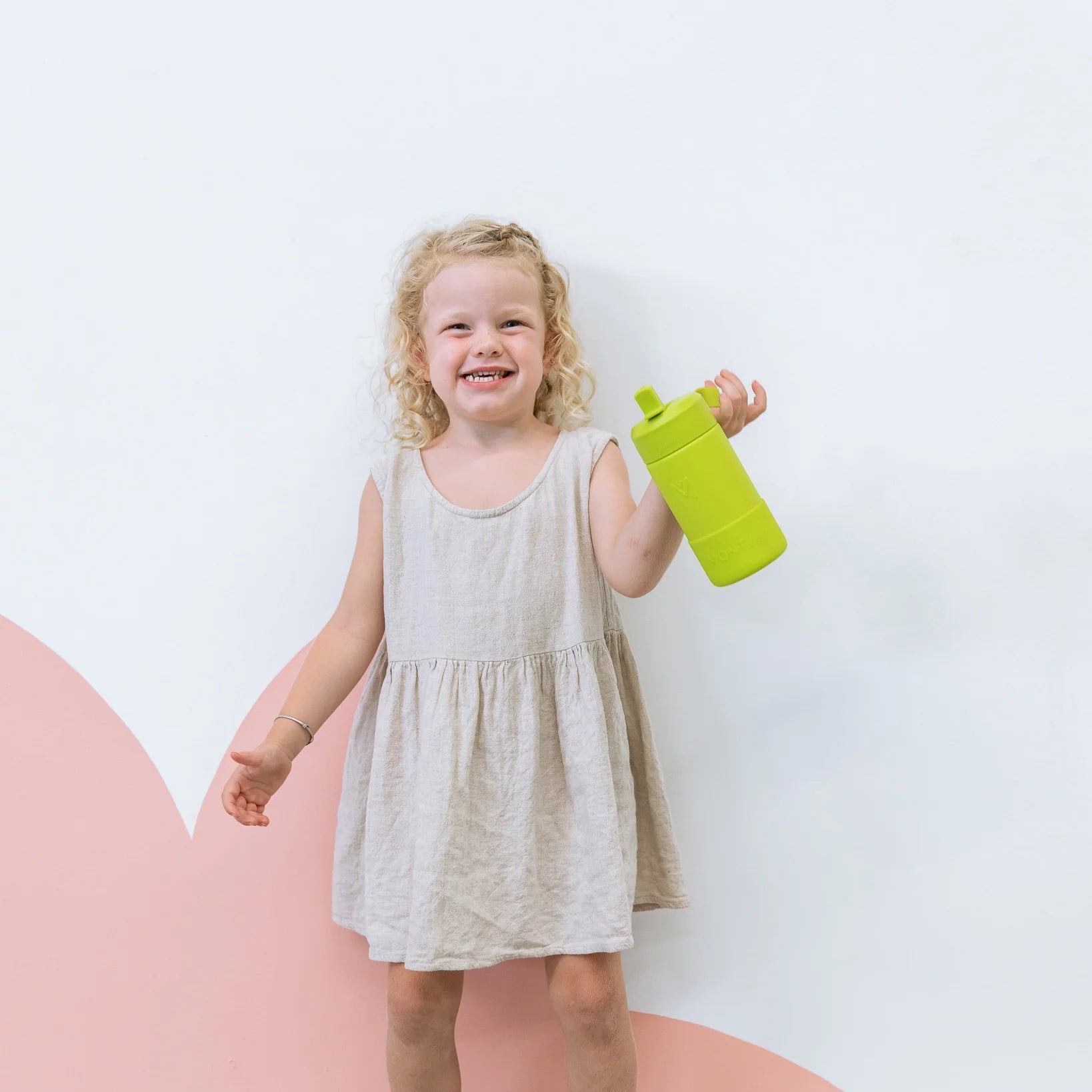 Descubre nuestra botella con boquilla de 350 ml: ¡el compañero ideal para todas tus aventuras! El tamaño perfecto para que incluso las manitas más pequeñas la sostengan.