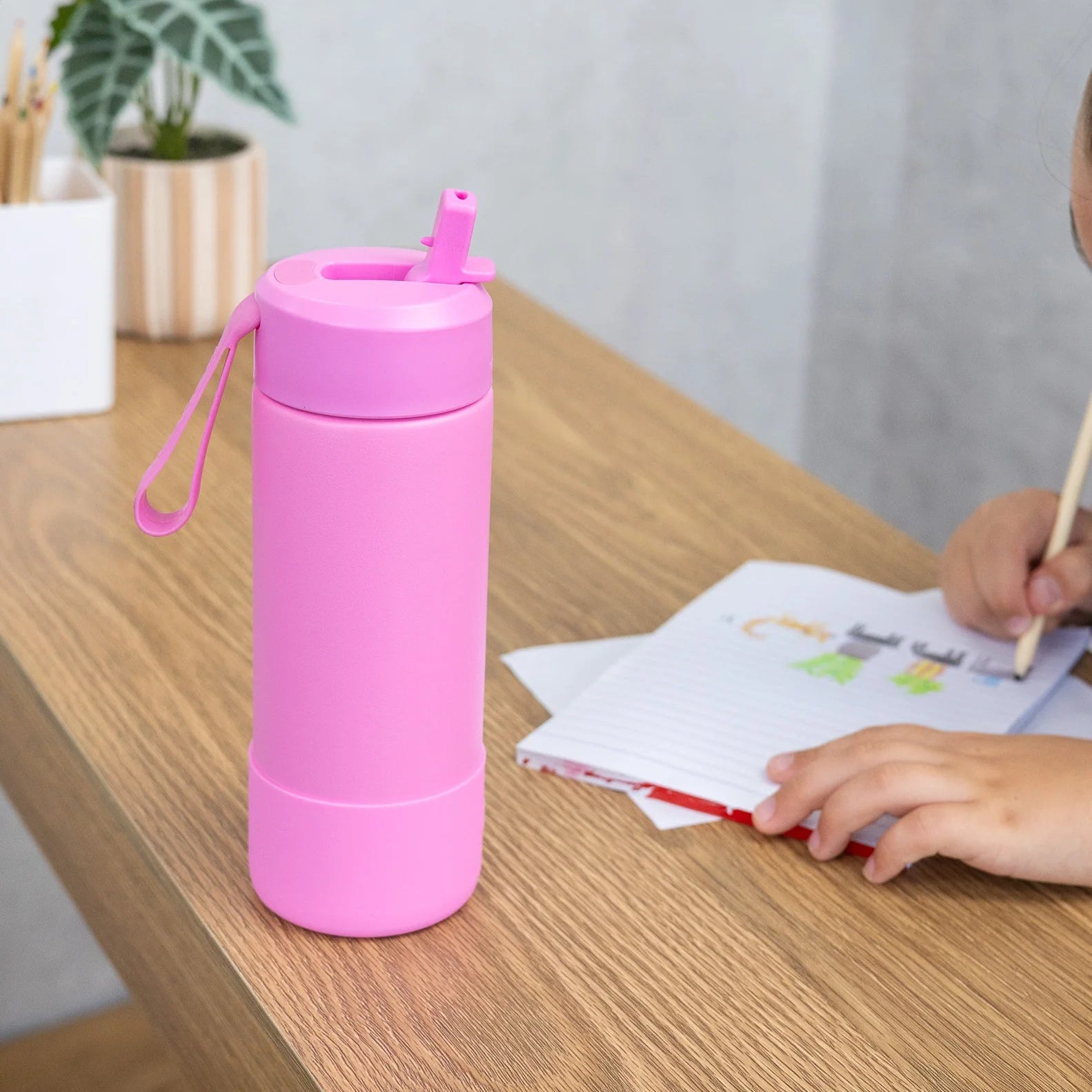 Descubre nuestra botella con boquilla de 475 ml: ¡el compañero ideal para todas tus aventuras! El tamaño perfecto para que incluso las manitas más pequeñas la sostengan.