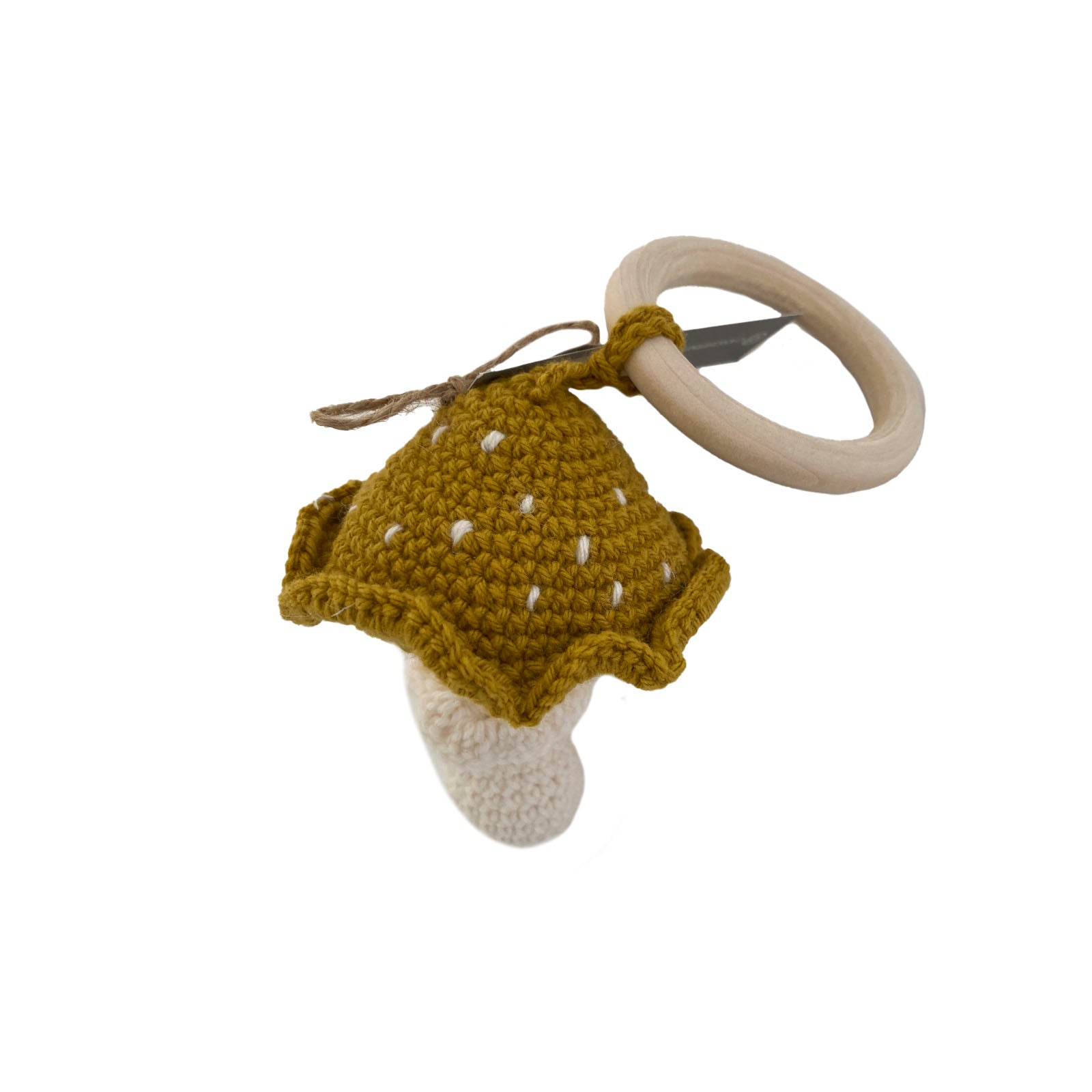 Nuestro mordedor en forma de hongo está diseñado para estimular los sentidos del bebé y acompañarlo en sus primeros descubrimientos.