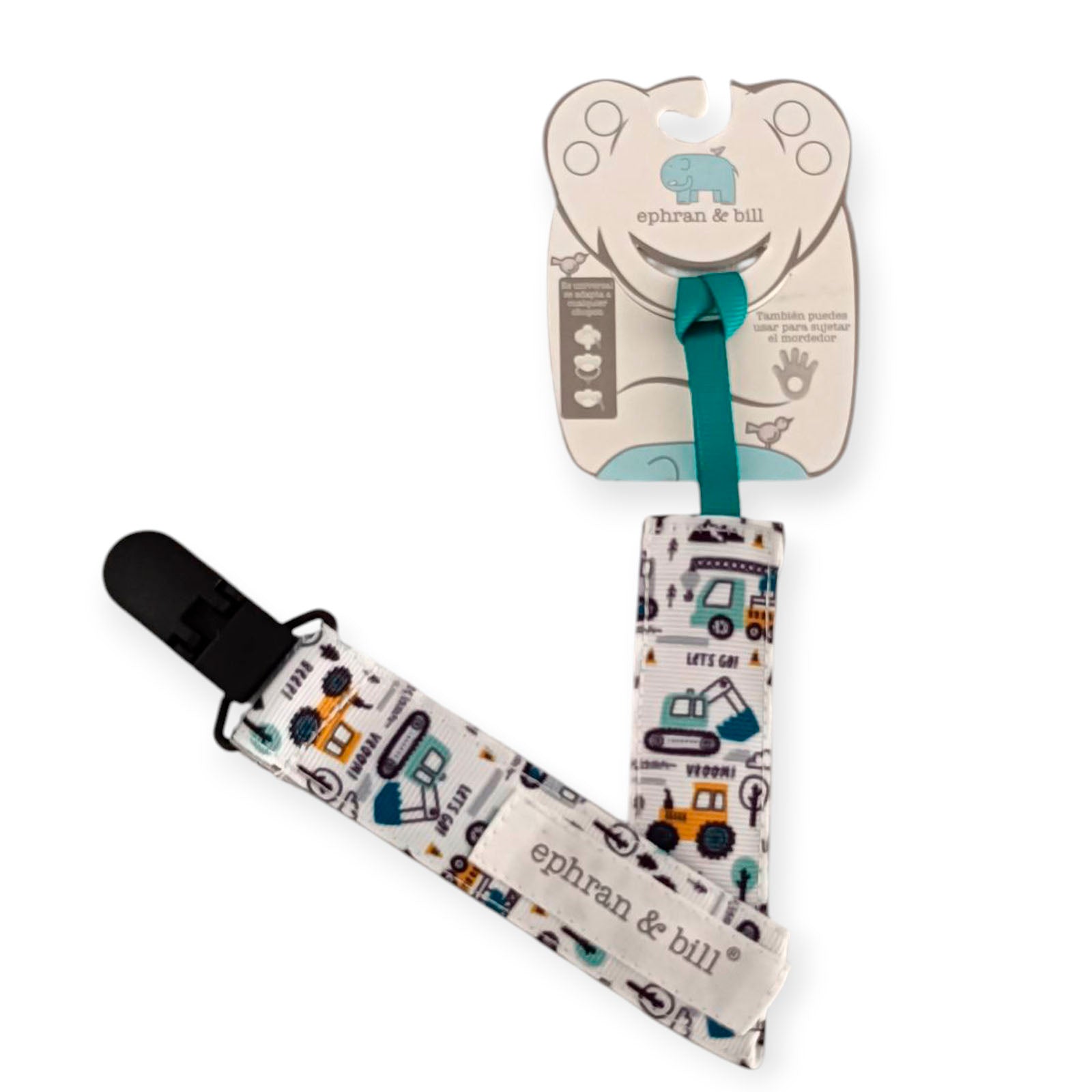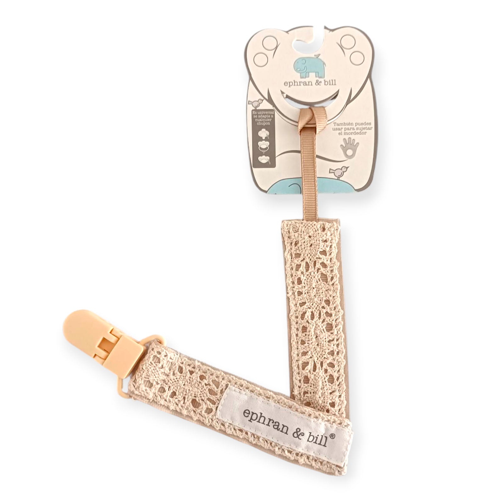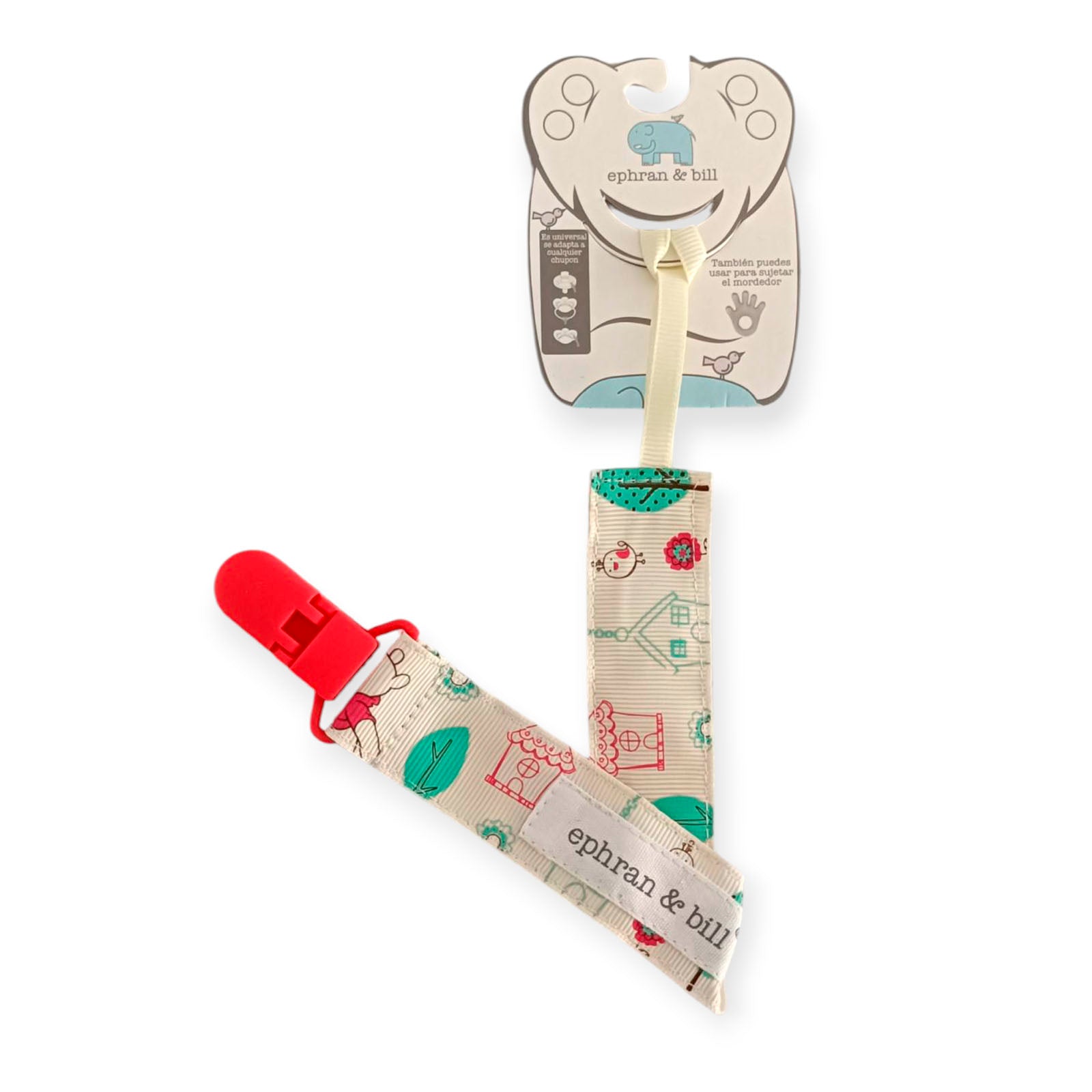 Cuenta en uno de sus extremos con un clip de silicona alimentaria para engancharse a la ropita del bebé sin maltratarla, sin óxido y al extremo contrario que sostiene al chupón.