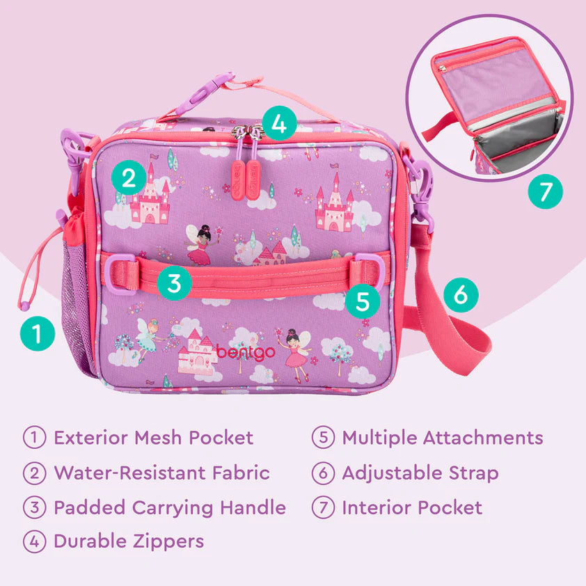 El aislamiento ultra grueso mantiene la comida más fría durante más tiempo y se adapta a tu lonchera, botella de agua y más. Con tela resistente al agua, un bolsillo exterior de malla, un bolsillo interior, cremalleras duraderas, correa ajustable, un asa de transporte acolchada y múltiples accesorios, esta popular lonchera es amada tanto por los niños como por los padres.