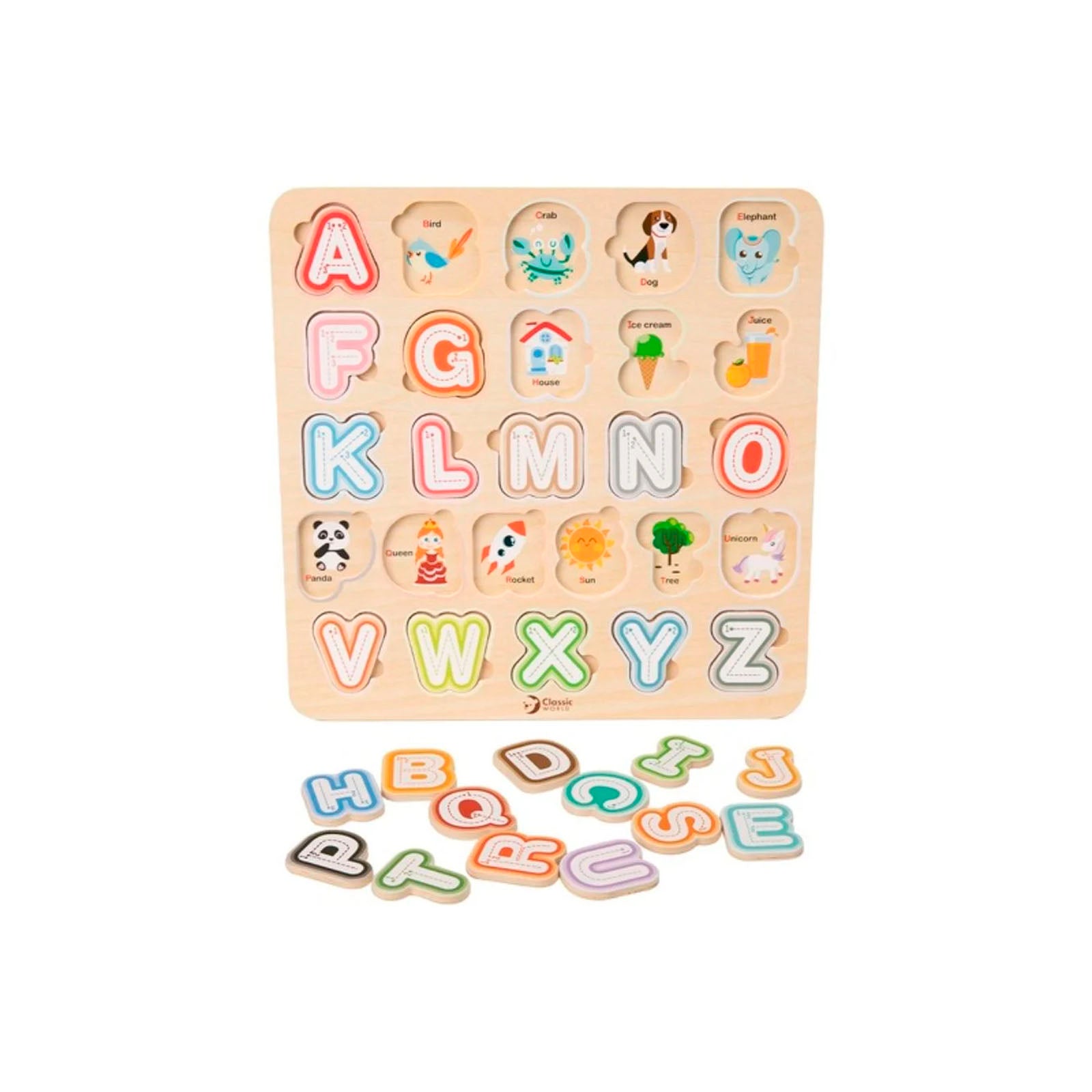 Rompecabezas Alfabético que fortalece el reconocimiento de letras y la familiarización con el abecedario.