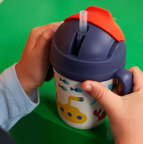 - Desliza la tapa hacia atrás para que suba la pajita.