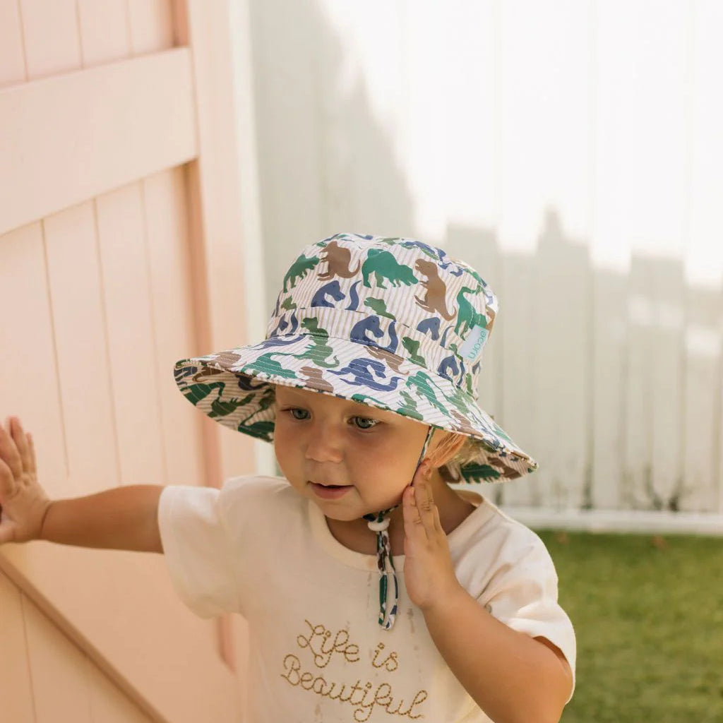 Sombrero tipo bucket de ala ancha T-Rex en algodón, confeccionado en algodón 100% suave, ligero y transpirable, pensado para proteger del sol con diversión.