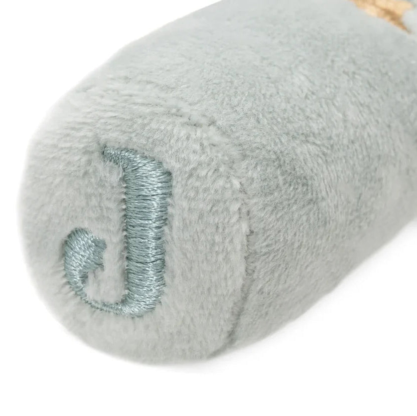 Fabricado en 100 % poliéster, este sonajero es suave, ligero e ideal para la etapa temprana del desarrollo.