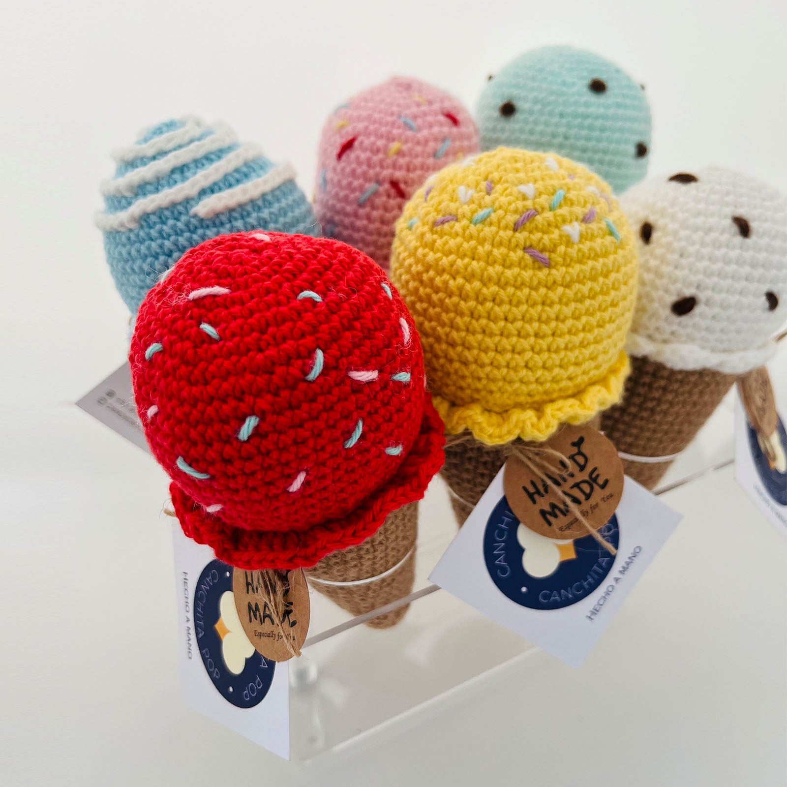 Nuestro mordedores en forma de helado está diseñado para estimular los sentidos del bebé y acompañarlo en sus primeros descubrimientos.