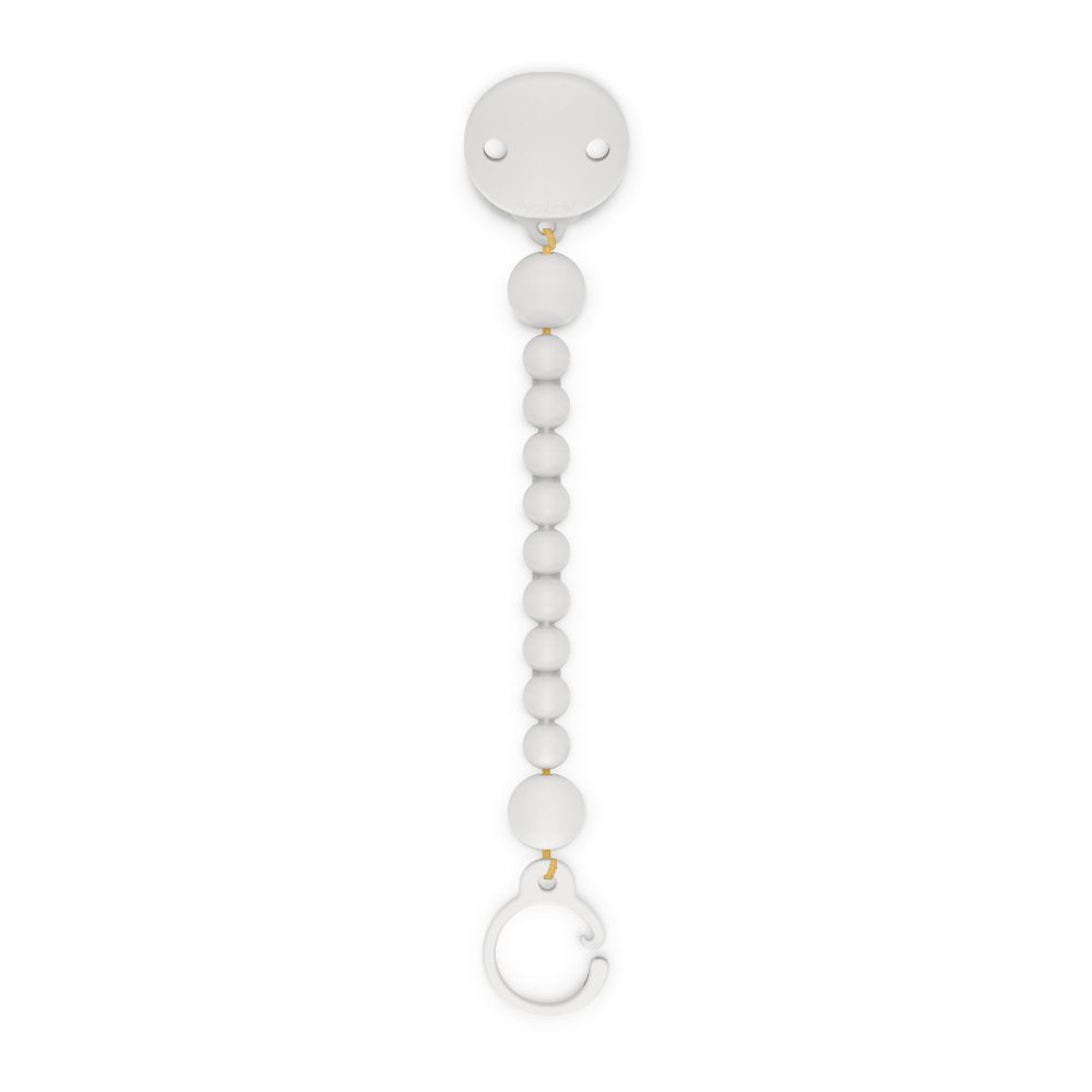 Permite sujetar los chupetes a la cuerda del bebé, evitando así que caiga al suelo, se ensucie o se pierda.