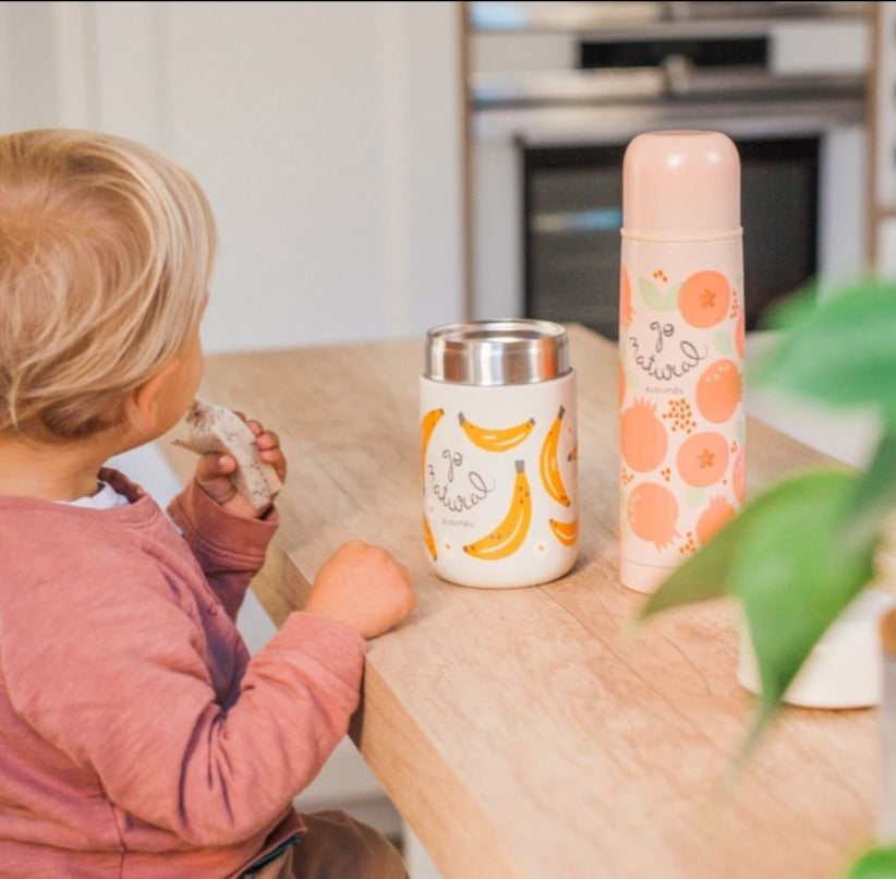 De acero inoxidable que aguanta la temperatura hasta 6 horas frío/calor. Llevarte la toma del bebé cuando sales de paseo o para dejar preparadas las tomas nocturnas en casa y así evitar su preparación en mitad de la noche.