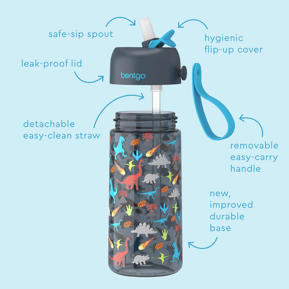 - NUEVO Y MEJORADO : Se ha mejorado nuestra botella de agua para niños con materiales reforzados para que sea aún más duradera y resista caídas, derrames y grietas! Es la opción perfecta para que los niños y los bebés disfruten después de un largo día de escuela, deportes y más para mantener a sus pequeños frescos. Además, cada estampado divertido combina con nuestras exclusivas loncheras, bolsas para el almuerzo, mochilas, utensilios y más de Bentgo Kids.