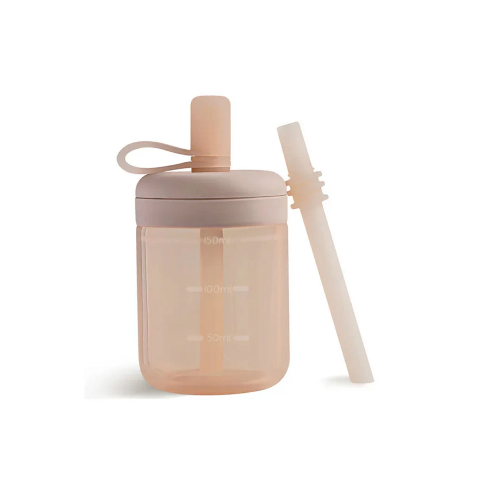 Nuestro vasito de entrenamiento está hecho silicona 100% grado alimenticio transparente para que siempre sepas cuánto queda dentro.
