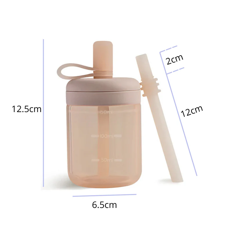 Nuestro vasito de entrenamiento está hecho silicona 100% grado alimenticio transparente para que siempre sepas cuánto queda dentro.